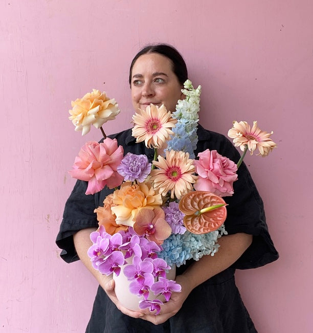 A sweet mix of beautiful premium florals arranged into a cute vessel. Floral variety is seasonal & photo is a guide only. Please leave any colour requests in the notes section & we will do our best to...Read more